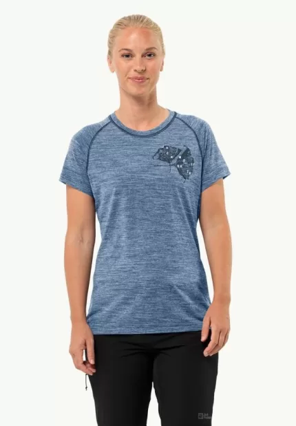 Kammweg Graphic S|s Damen-T-Shirt aus Merinowolle Elemental Blue