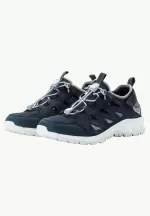 Ein Outdoor Schuh für Damen mit einer Vielzahl technischer Eigenschaften, die das Tragen erleichtern Verwendung.